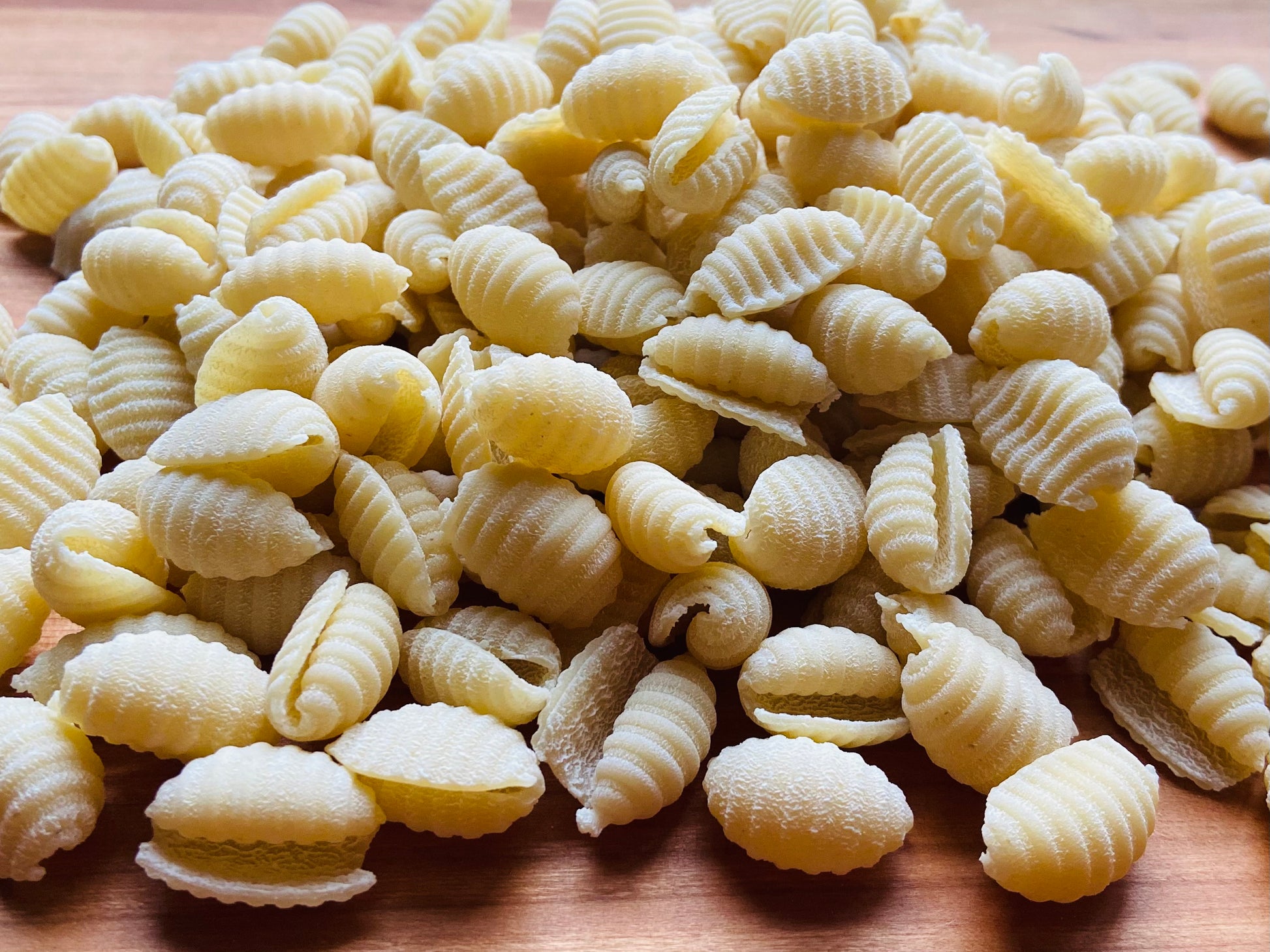 Gnocchetti Sardi is a a traditional shape from the isle of Sardinia. It is our thickest, and hardiest pasta shape that serves well with simple flavors like butter and herbs, Mac & cheese, or bold flavors like a thick sausage ragu, or pancetta, broccoli, and pesto. Each bag has 16 oz. of pasta. Our pasta is made with durum semolina wheat grown in the USA, which contains gluten, and is non-GMO. Economy ground shipping included.